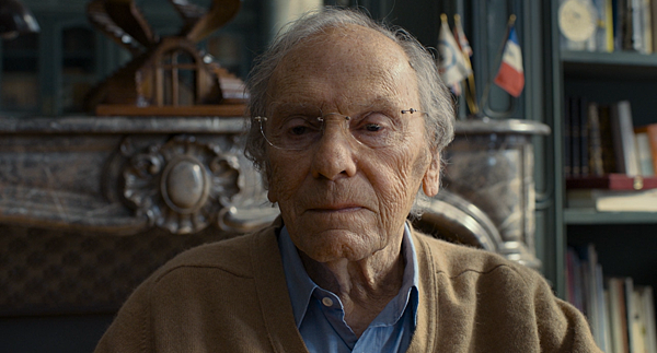 另一方面,在「有聲卻安靜的手語交流動態影像」與「被口白詮釋填滿的無聲靜態寫真」之間,《巴黎浮世繪》的場面調度還囊括了「電影中的電影」、「電影中的拍電影」等等「多元影像動能」來與「尋常的電影手法」相互輝映較勁;於是,在本片長達120分鐘的時間軸上,漢內克導演用編碼劇本的影像語言,織造出與故事人物同樣環環相扣又互不相讓的影像主體辯證架構,從而讓他的創作得以彰顯自身面對電影媒材的架勢與駕馭。無論是層層揭露的人事物本質,或者讓電影的幻視可能性不斷自我重塑,皆是作者用以加固自己「洞悉者」立場的手段,又或者,更精確地說,那是他為自己導演地位踩穩腳步所建造的關鍵大平台。