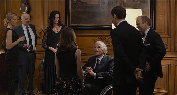 故事隨後正式展開,血緣與照養責任相互綁定的現代社會機制啟動,少女被接濟到原生父親的住所重新開始生活,並與過去僅在幼童時期碰過面的爺爺逐漸相知相熟。在他們兩人彼此因為小兒子婚姻離異而變得毫無瓜葛的十年之間,爺爺為了「照顧老伴」而將家族事業交棒給了「教養有佳」的大女兒Anne,經歷數年勞心費力的長期照顧身心消耗,彷彿復刻了《愛・慕》的故事情節或特意承繼了其血統一般,他決定用枕頭將臥病在床的妻子活活悶死,而年邁的他此後開始不斷尋求適切機會自行終結性命。又過了幾個年頭,因為一起嚴重工安意外的導火線,爺爺的大女兒原先繼承家庭營造事業所持有的全部公司股份都被依法移交到了銀行財團的手裡,同時,以少女的「自殺失敗」作為契機,祖孫倆發掘了彼此「同病相憐」的經歷,最後爺爺在Anne與美商銀行一哥(很可能是實質政治考量大於虛無真愛場面)的訂婚儀式上逮到機會,故事便以祖孫相互坦誠赤裸生命重量的死生交陪相送「幸福作結」。存在於這些看似浪漫化卻也有幾分殘酷的「表面風景」背後,漢內克的電影這次也不意外地提供了他從不掩藏卻也從不直述的裏面風景。